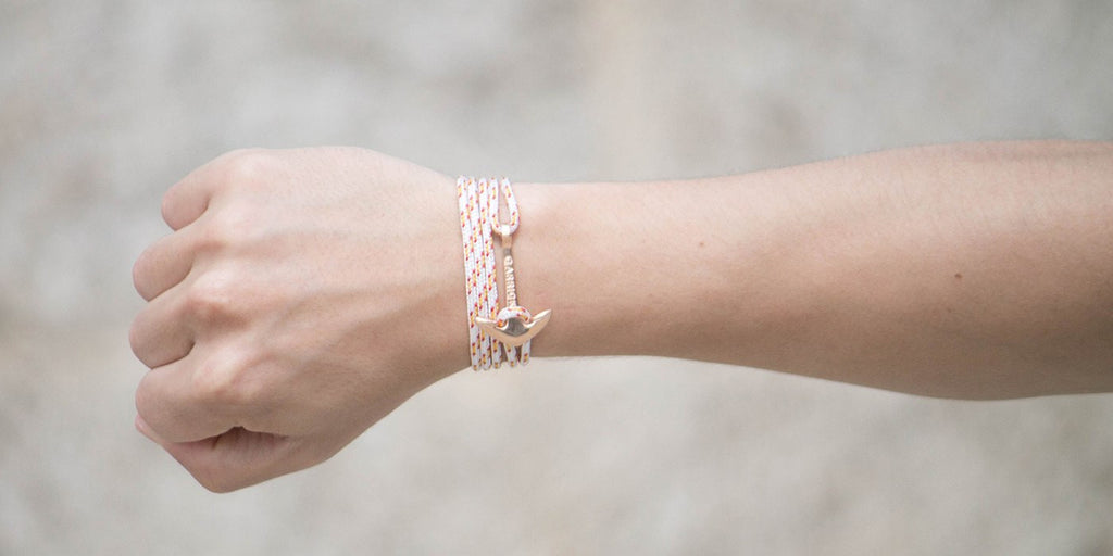 Pulsera náutica unisex y ajustable a todas las muñecas con nudos corredizos. Fabricada a mano, en España, con cabos de poliéster de muy alta calidad, resistentes a la abrasión y flexibles que se adaptan perfectamente. El ancla está fabricada en acero AISI 316, resistente a la corrosión del agua salada.